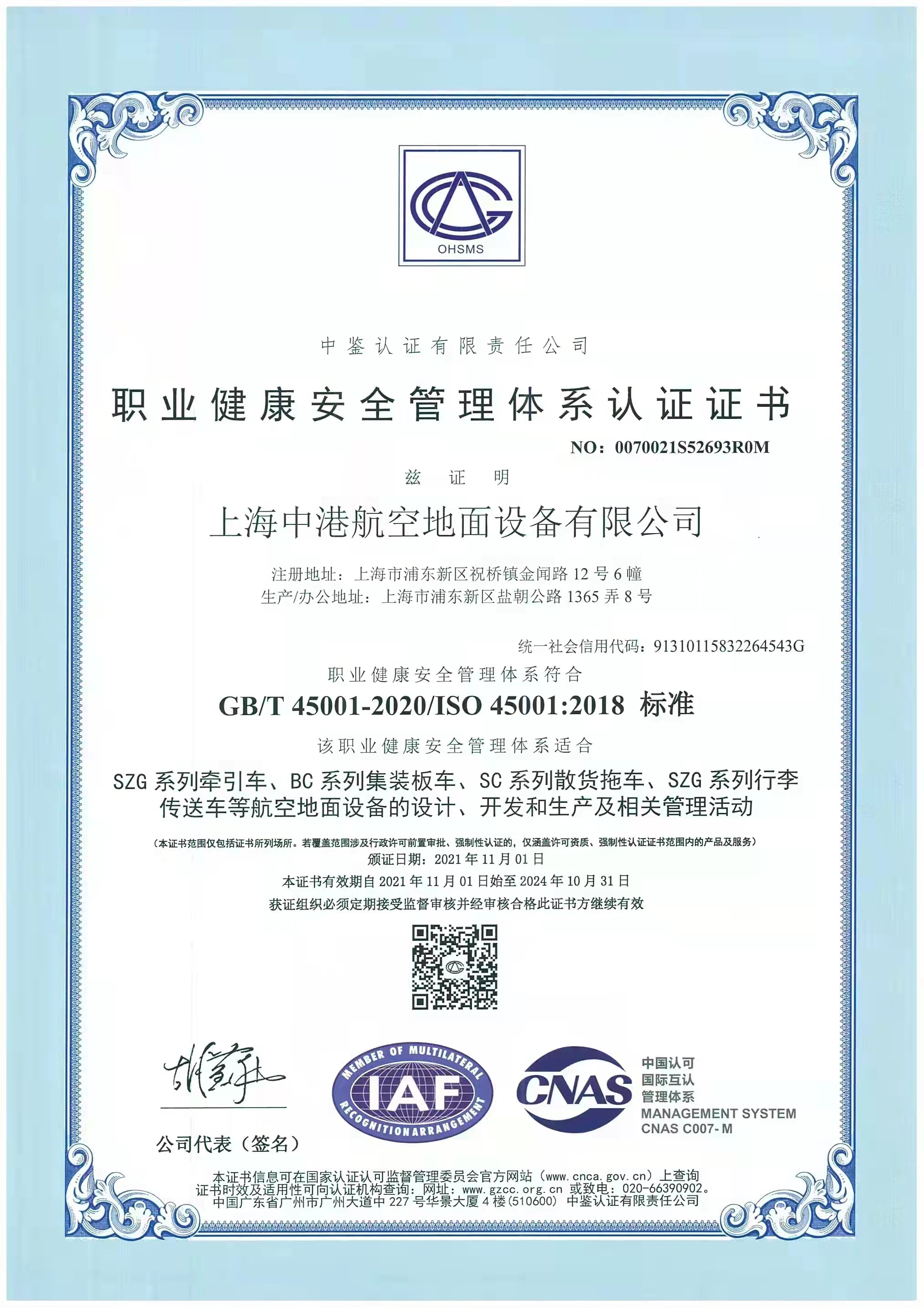 Airport Equipment Certificate